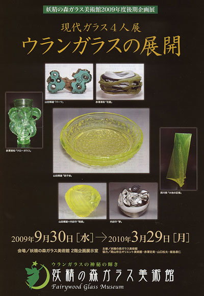 妖精の森ガラス美術館2009年度後期企画展 現代ガラス4人展「ウランガラスの展開」 2009年9月30日(水) 〜2010年3月29日(月) 岡山県 妖精の森ガラス美術館 |